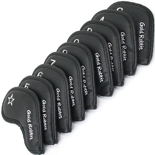 Gold Rabbit (9P) PU Iron Golf Club Head Cover Set 5/6/7/8/9/P/S/A/* (Black/Gray)