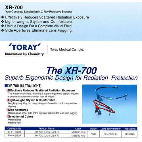 Toray XR-700 Ultra Light 0.07mmPb X-Ray Radiation Protective Eyewear Leaded Lens (Blue)