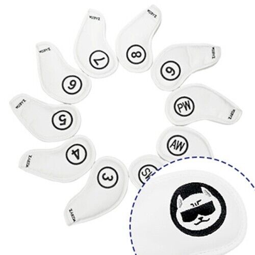 French Bulldog Dog 10P Iron Head Cover Golf Club Headcover Black #3-9/Pw/Aw/Sw (White)