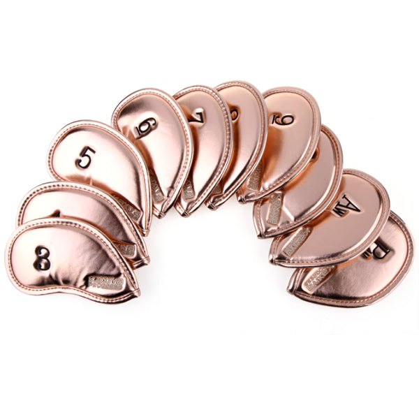 Kaxiya Progress 10 Pcs Iron Head Cover Golf Clubs Headcover 3-9/Sw/Aw/Pw (Pearl Gold)