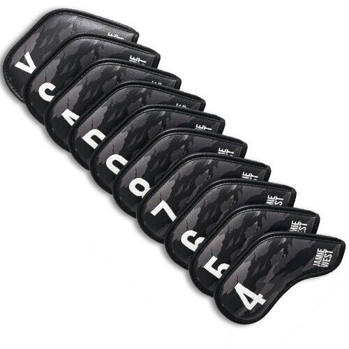 Jamie West 10 Pcs Camouflage Iron Head Cover Golf Club Headcover #4-9/S/A/P/X Black