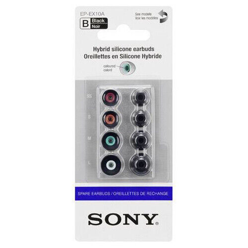 2 x Sony EP-EX10A Hybrid Silicone Earbuds Spare Tips SS/S/M/L (Black)