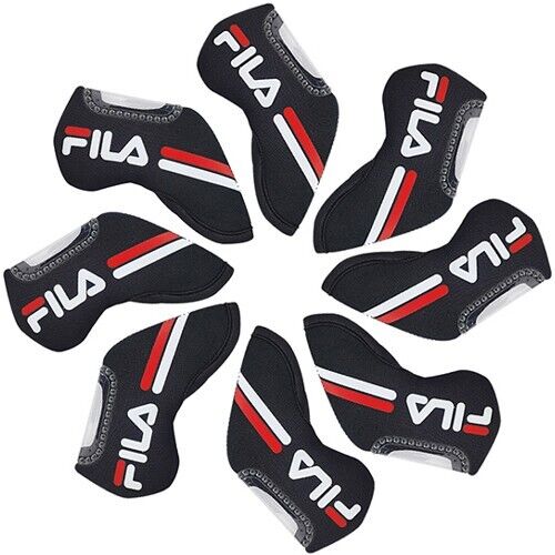 FILA 8 Pcs Neoprene Iron Head Cover Golf Club Headcover Set (Black)