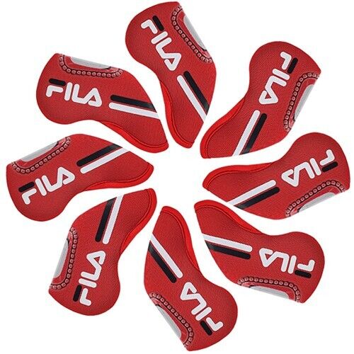 FILA 8 Pcs Neoprene Iron Head Cover Golf Club Headcover Set (Red)