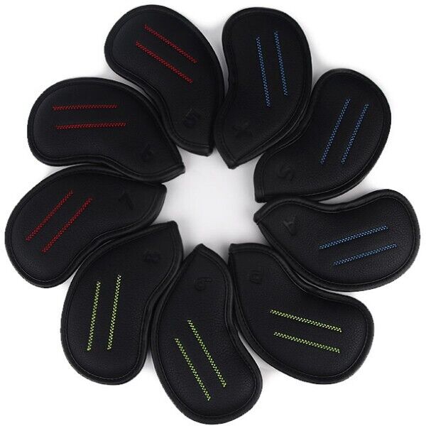 Forbos 9 Pcs PU Iron Head Cover Golf Club #5-9/P/A/S/X (Black)