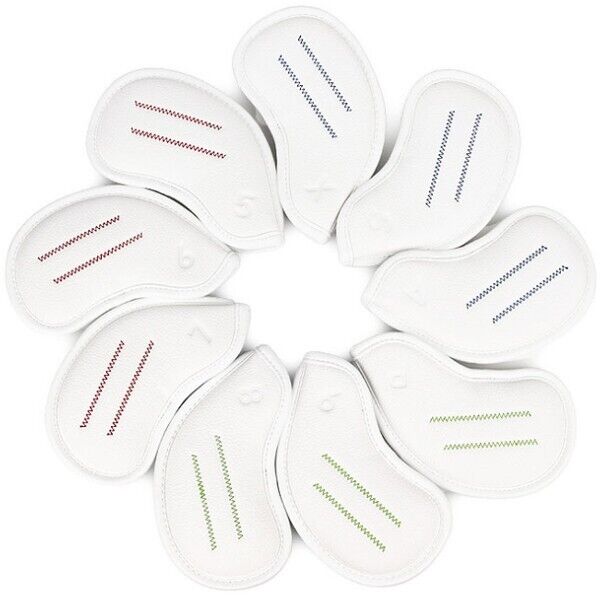 Forbos 9 Pcs PU Iron Head Cover Golf Club #5-9/P/A/S/X (White)