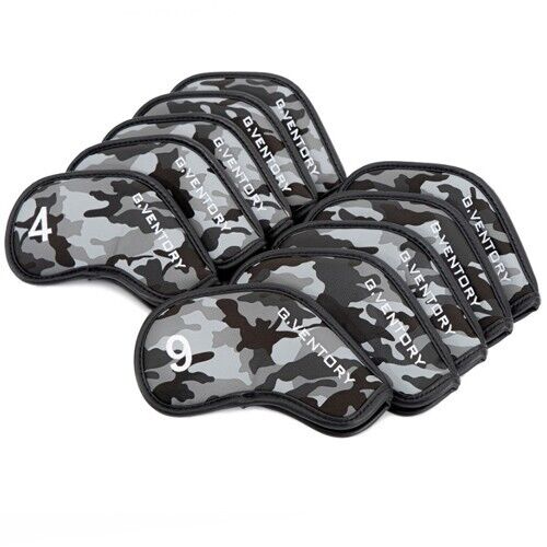 G.VENTORY 10P Camo Golf Iron Head Cover 4-9/P/A/S/* Magnetic Closure (Gray)