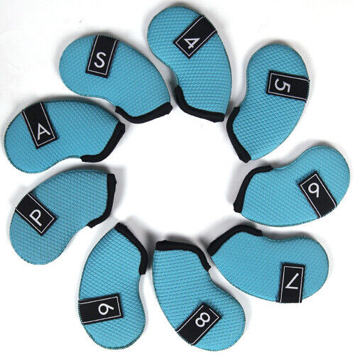 PGA TOUR 9P Iron Head Cover Set Neoprene Headcover Golf Clubs 4-9/S/A/P (Sky Blue)