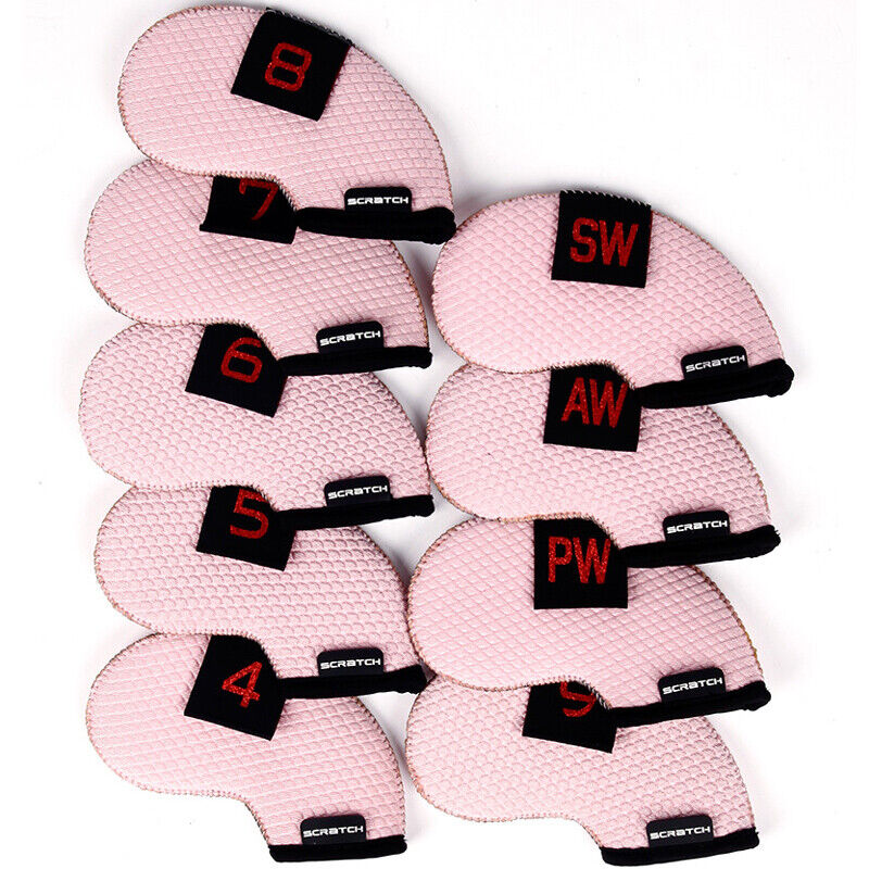 ScratchGolf 10P Iron Head Cover Set Golf Club Headcover #4-9/P/A/S/X (Pink)