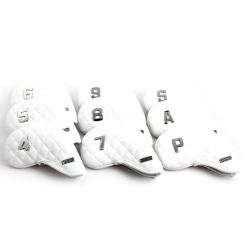 Venus 10 Pcs Iron Head Cover 4-9/S/A/P/X Quilting Golf Magnetic Headcover (White)